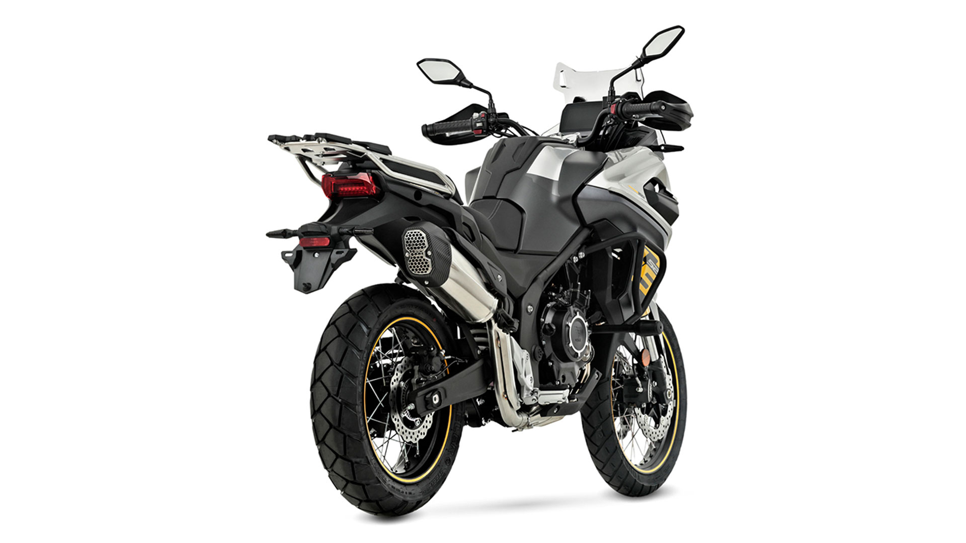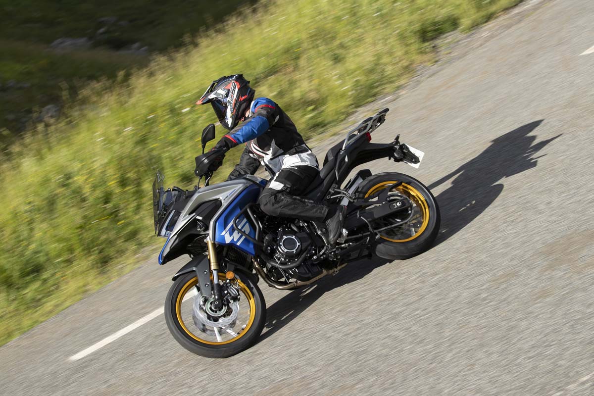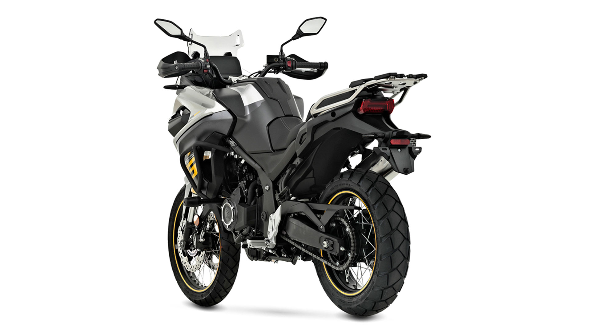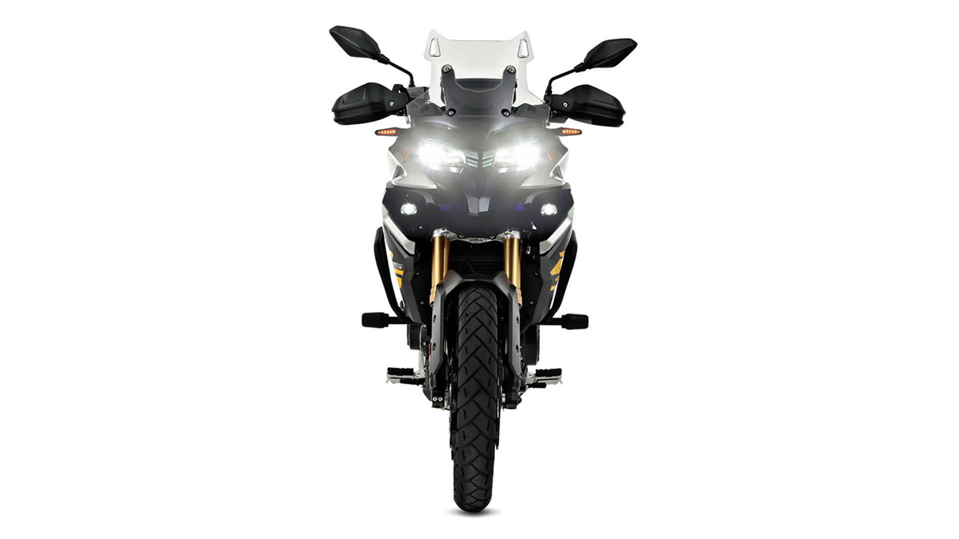 – Instelbare Kayaba-voorvork en spaakwielen van 19” en 17” met tubeless Metzeler-banden.